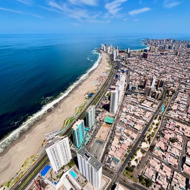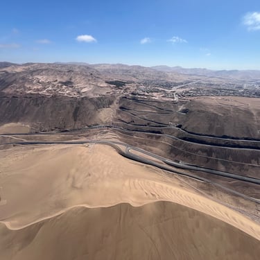 Arrivée à Santiago, puis vol intérieur vers Iquique avec survol des Andes et de l’Aconcagua.