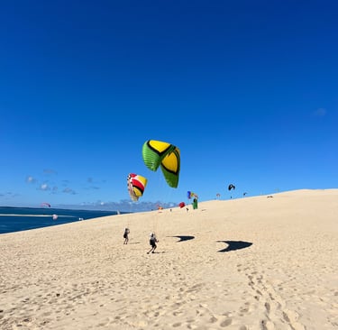 Découvrez les stages qu'Évènement'Ciel Parapente propose en Haute-Savoie, en Savoie, dans les Alpes du Sud, à la Dune du Pilat etc.
